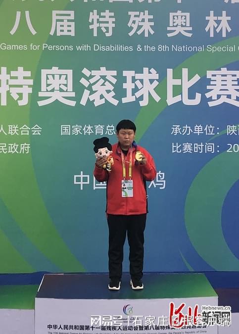 河北选手刘梦怡获得特奥会滚球金牌,图为颁奖现场。河北省残联供图