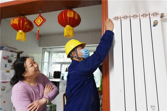 11月1日,石家庄华电供热集团有限公司华兴小区换热站工作人员为社区居民上门服务。当日,河北省启动供热,供热企业加强供热设施巡检巡查,主动帮助群众解决问题,全力提升供热质量水平。河北日报记者 史晟全摄