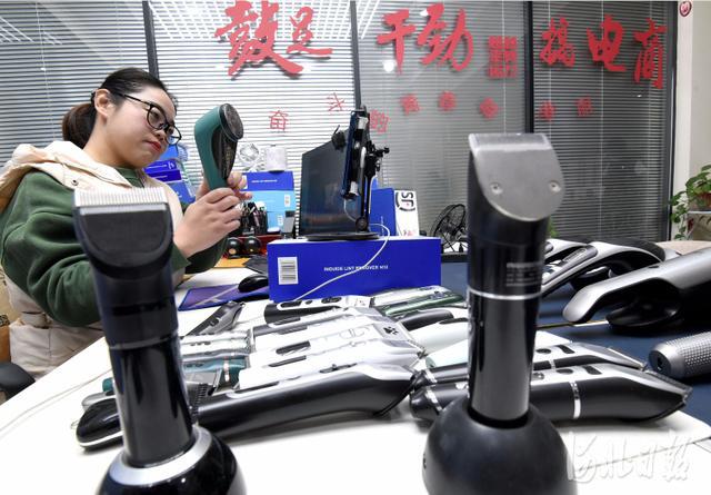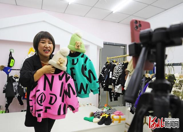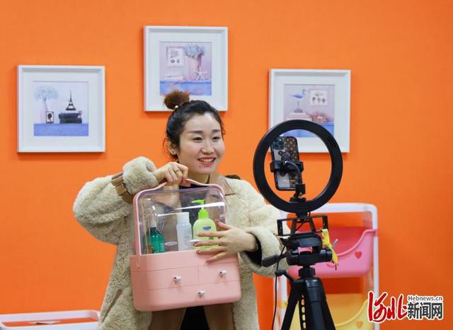 2021年11月3日,电商主播在河北省玉田县鸦鸿桥镇电商产业园直播带货。通讯员李洋摄影报道