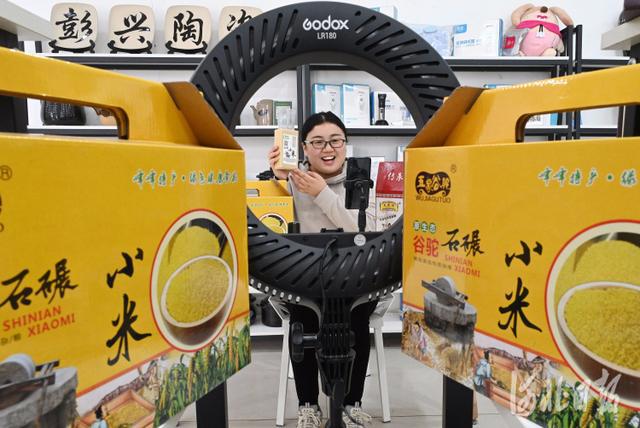 2021年11月3日,网络主播在河北省石家庄市栾城区直播销售产品。河北省石家庄市栾城区通过网络平台直播展示、线上线下同步售卖等方式,拓宽栾城区特色农副产品的售卖渠道,促进农民增收。通讯员李明发摄影报道