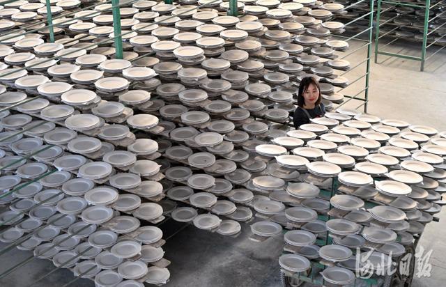 2021年11月3日,河北省邯郸市峰峰矿区一家陶瓷企业的工作人员在陶瓷生产线上忙碌。通讯员郝群英摄影报道