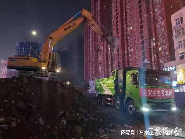 18时30分许,在大经街与中山路交口东南角的围挡内,记者看到,身披绿色“铠甲”的新能源渣土车队已经到达,现场钩机、雾炮车等机器一齐开动,开始装载建筑垃圾。工作人员告诉记者,这里大约有500方渣土,预计当晚清理完毕,为最大限度地减少扬尘污染,还配备了湿扫车,每辆上路的车还将进行车轮冲洗。