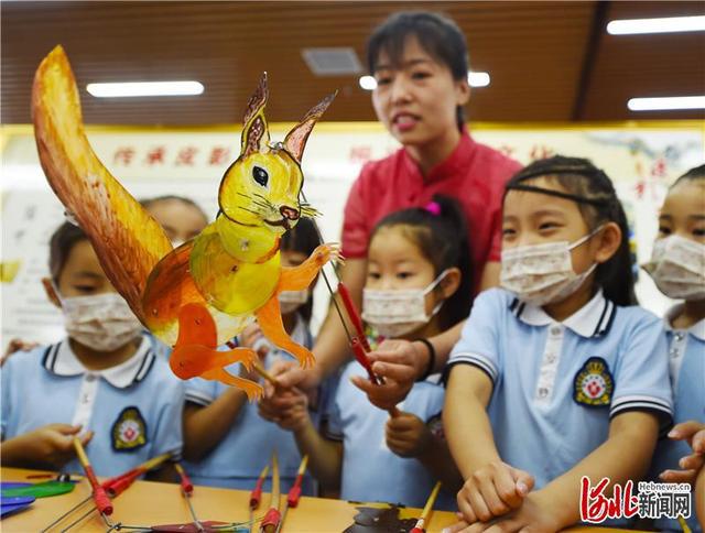 6月12日,沙河皮影戏艺人在为小朋友演示皮影戏。当日是“文化和自然遗产日”,沙河市开展国家级非遗项目沙河皮影戏展演活动,让游客感受传统文化魅力。(本报资料片)河北日报记者赵永辉摄