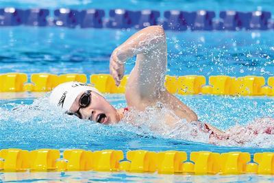 女子800米自由泳决赛,李冰洁是夺冠热门,她入水后就迅速取得领先,很快甩开其他选手一个身位以上,最终以8分02秒90的绝对优势率先触壁,夺得金牌,并且打破了世锦赛纪录。