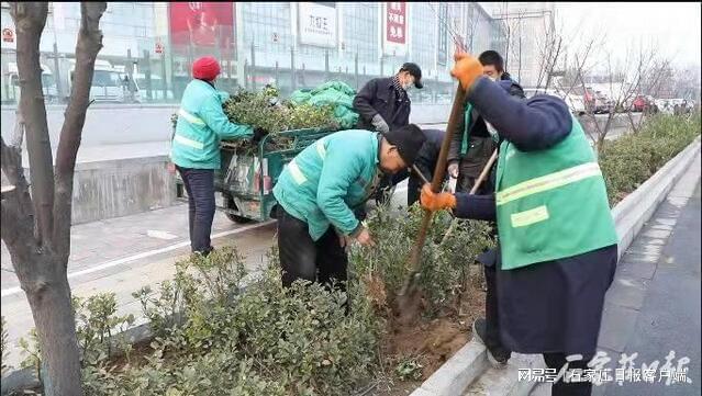 提升园林绿化品质。彻底清理绿地内积存垃圾、枯枝落叶、杂草等;对行道树、绿篱、绿地内植物缺株和草坪斑秃进行全面补植;对街道绿篱进行造型修剪,保证园林植物的良好景观效果。
