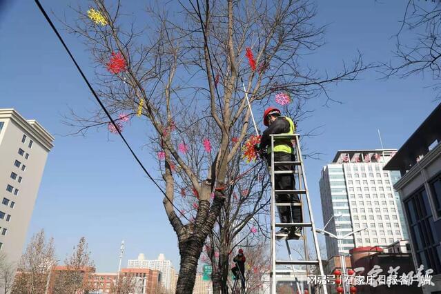 据市照明管护中心监控中心主任赵洁介绍,市城市照明管理处专门组织人员对市区二环内裕华路、体育大街、育才街、师范街等8条街道约800棵树体上悬挂“春暖花开”“天降祥瑞”“满路生花”“不忘初心”“春雨迎新”等主题的各种灯球灯饰2.1万套,灯串2.8万串,着力打造风格清新的一区一街一景的春节氛围。截至目前,已完成总工程量的70%,预计1月20日(腊月十八)全部完工。