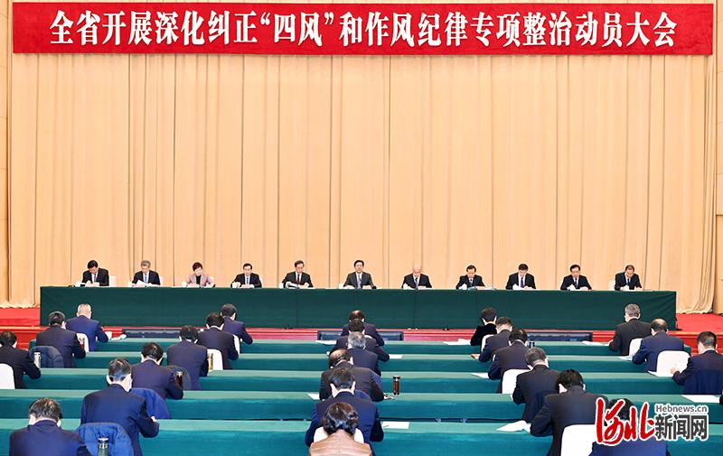 河北新闻网1月21日讯(河北日报记者四建磊、尹翠莉)今天上午,全省开展深化纠正“四风”和作风纪律专项整治动员大会在石家庄召开。省委书记、省人大常委会主任王东峰在会议上强调,要深入学习贯彻习近平总书记重要指示精神和党中央决策部署,全面落实十九届中央纪委六次全会及省第十次党代会部署要求,以更大的决心和力度深化纠正“四风”和作风纪律专项整治,为建设现代化经济强省、美丽河北提供坚强保障。省委副书记、省长王正谱主持,省政协主席叶冬松出席,省委副书记廉毅敏宣读《中共河北省委关于全省开展深化纠正“四风”和作风纪律专项整治的意见》。