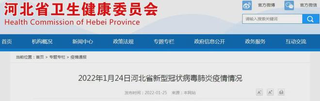 2022年1月24日0—24时,河北省新增本土新型冠状病毒肺炎确诊病例2例(雄安新区,均为正在集中隔离的北京丰台区返乡人员),无新增本土无症状感染者。