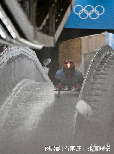 2月10日上午,北京2022年冬奥会男子钢架雪车比赛的争夺在延庆国家雪车雪橇中心正式打响。图为河北运动员殷正在第一轮滑行中。河北日报记者霍艳恩摄