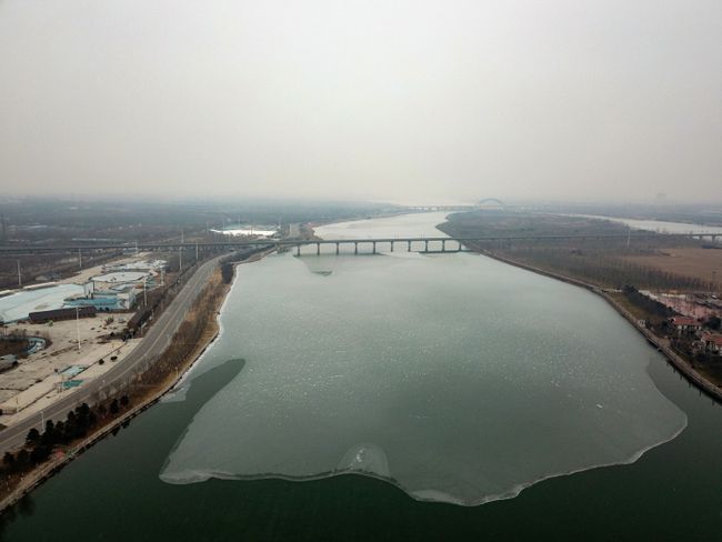滹沱河冬季补水现场。 省水利厅供图