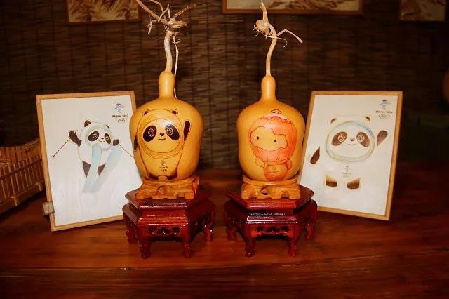 葫芦,谐音“福禄”,自古以来就被当作招财纳福的吉祥物。河北青县非物质文化遗产葫芦烙画项目第四代传承人蒋蔼振创作了“迎冬奥”系列葫芦烙画、木板烙画作品,以吉祥物“冰墩墩”和“雪容融”为创作主体来表达对冬奥会的期盼和喜悦之情。
