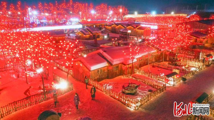 2022年2月11日晚,游客在河北省遵化市团瓢庄乡山里各庄村冰雪乐园观灯赏景。通讯员 刘满仓摄影报道