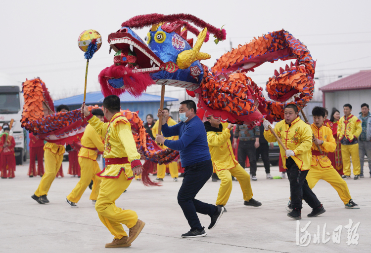 2022年2月11日,河北省黄骅市民间艺人进行精彩的舞龙表演,红红火火闹元宵。通讯员 张国文摄影报道