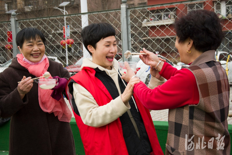 2022年2月11日,河北省唐山市丰润区燕山路街道燕山三社区居民和志愿者们欢聚一堂,一起包元宵,吃汤圆,其乐融融。 通讯员 齐磊摄影报道
