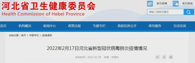 2022年2月17日0—24时,河北省无新增本土新型冠状病毒肺炎确诊病例,无新增本土无症状感染者。