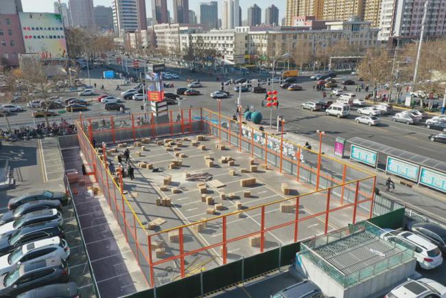2月21日10时许,在中山路与平安大街交叉口东南角(原市一招),多名施工人员正在安装篮球场的围网框架,此处正是石家庄市体育局之前公示的200个球类运动场地之一。按照计划,这里将建成一个三人制篮球场。
