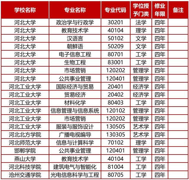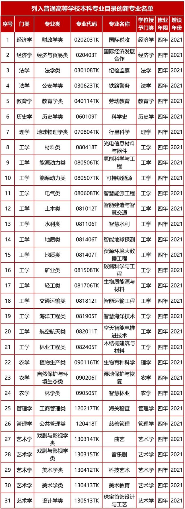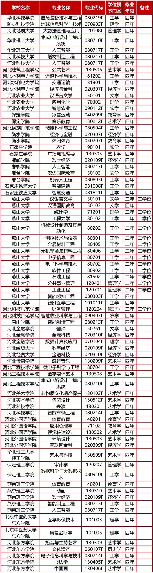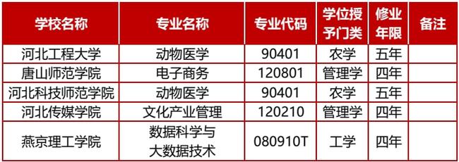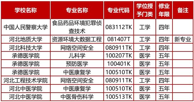 近日,教育部发布通知,公布2021年度普通高等学校本科专业备案和审批结果。确定了同意设置的国家控制布点专业和尚未列入专业目录的新专业名单。河北新增+调整+撤销这些专业↓↓↓