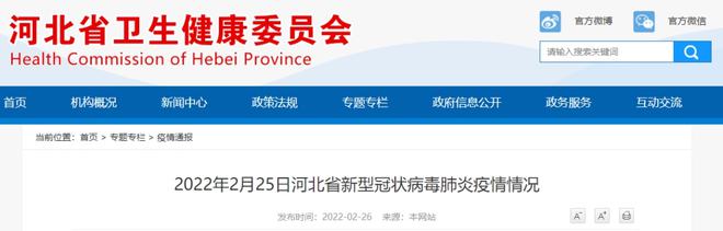 2022年2月25日0—24时,河北省无新增本土新型冠状病毒肺炎确诊病例,无新增本土无症状感染者。截至2月25日24时,河北省现有本土确诊病例0例;尚在医学观察本土无症状感染者1例。