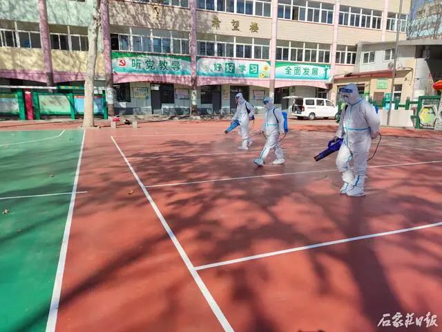 为做好春季开学返校前疫情防控工作,营造安全卫生的校园环境,确保学生能安全返校,2月27日下午,石家庄市八一小学聘请专业人员对校园进行了全方位消杀。