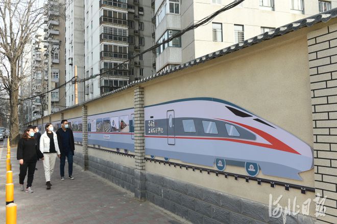 2022年3月3日,在河北省石家庄市谈南路的石家庄工业印记文化长廊吸引了过往市民的目光。河北省石家庄市小街小巷整治提升专项行动中,市总工会联合长安区总工会、青园街道办事处在谈南路和青园街交口的墙壁上打造了石家庄工业印记文化长廊,该长廊全长223米,由石家庄工业发展印记和劳动模范宣传墙组成,展示了新中国成立以来石家庄工业发展历史进程中有代表性的28家企业和10名全国劳模的图片和事迹。河北日报记者 史晟全摄