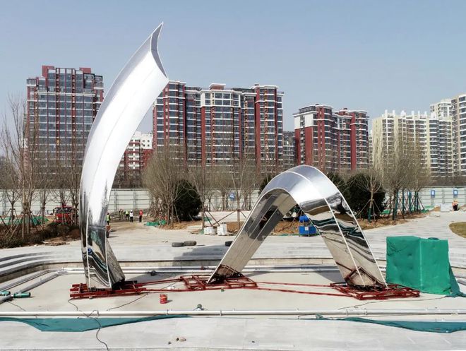 篮球场的西侧是公园的主雕塑,为钢结构设计,十分写意,让我们感悟《奔跑者》的姿态,激励着人们努力奔跑,不负韶华。