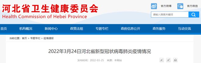 2022年3月24日0—24时,河北省新增本土新型冠状病毒肺炎确诊病例24例,其中廊坊市23例、定州市1例(系外省途经定州高速服务区的协查人员);新增本土无症状感染者288例,其中廊坊市229例、唐山市59例。治愈出院11例,无症状感染者解除医学观察10例。