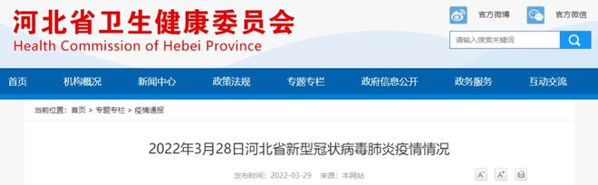 2022年3月28日0—24时,河北省新增本土新型冠状病毒肺炎确诊病例6例,其中廊坊市5例、保定市1例(系上海返冀人员);新增本土无症状感染者108例,其中唐山市73例、廊坊市34例、石家庄市1例(系外地途经石家庄高速服务区的协查人员)。治愈出院23例,无症状感染者解除医学观察138例。