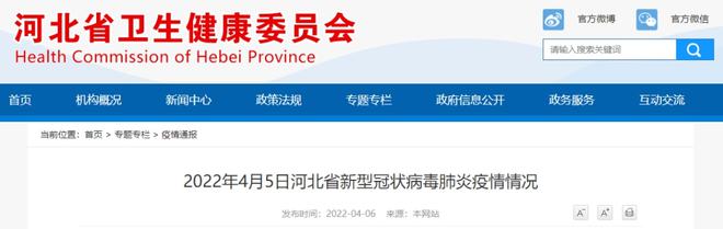 2022年4月5日0—24时,河北省新增本土新型冠状病毒肺炎确诊病例6例,其中邯郸市5例、雄安新区1例(外省关联病例);新增本土无症状感染者103例,其中邯郸市78例、保定市21例、石家庄市4例(外地返回人员)。治愈出院14例,无症状感染者解除医学观察134例。