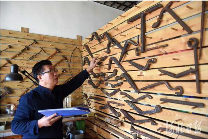 金工冷锻造技艺代表性传承人王建辉在检查自己的工具。河北日报记者赵永辉摄影报道