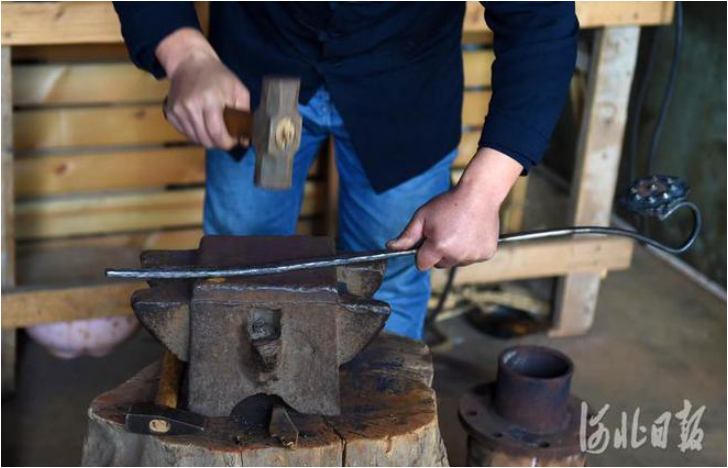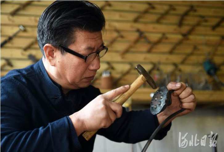 传统金工冷锻造技艺代表性传承人王建辉在锻制铁如意。河北日报记者赵永辉摄影报道