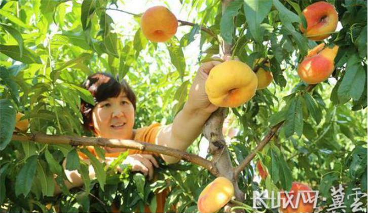 游客在唐山乡伊香生态农业开发有限公司特色桃种植基地采摘蟠桃。吴海民摄