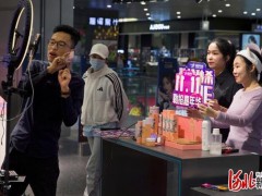 分享至2021年11月10日,河北省石家庄市一购物中心内,商家正通过网络直播平台推介商品。线下商家利用实体店面能为消费者带来更全面体验的优势,借助线上获客的便利性,在“双十一”促销“战场”上“播”出商机。通讯员杨磊涛摄影报道2021年11月10日,河北省石家庄市一购物中心内,商家正通过网络直播平台推介商