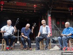 陈振台(左二)和“乐友”表演中。 徐铭怿供图宁波9月27日电(记者 李典)循着一阵悠扬的二胡声穿过林海,便看到人群中,一位老人坐于屋前,紧闭双眼,全身心投入在演奏之中。老人是72岁的浙江省宁波市宁海县桑洲镇麻岙村村民陈振台。四岁时患一场大病后,他的眼前便只剩下黑暗。但音乐却让他觅得了一个五彩斑斓的
