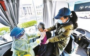 北京东城区天坛街道流动疫苗接种车服务社区老年人