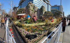 长安街沿线花坛鲜花“上岗”前经过耐寒磨炼