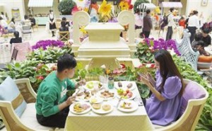 随着复工复产的脚步加快,我市各大商圈在做好疫情防控的前提下,渐渐恢复了“烟火气”。图为人们在一家花园式餐厅中品尝精致美食。阳光明媚,春意正浓,在刚刚过去的周末,我市许多商业体、景区和餐饮店客流增长明显,逐渐“苏醒”的商圈和各类特色体验使市民日常休闲娱乐有了更多好去处。上周日,有着百年历史