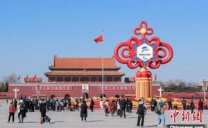 24日,天安门广场的“精彩冬奥”花坛,北京冬奥会会徽已转换为北京冬残奥会会徽。中新社记者 贾天勇摄北京2月25日电 (徐婧)24日下午,天安门广场的“精彩冬奥”主题花坛上,中国结南北两面的北京冬残奥会会徽已经更换完毕;在北京奥林匹克中心区,施工人员正将冬奥景观“冰雪盛会”正中的北京冬奥会会徽更换为冬残奥会会
