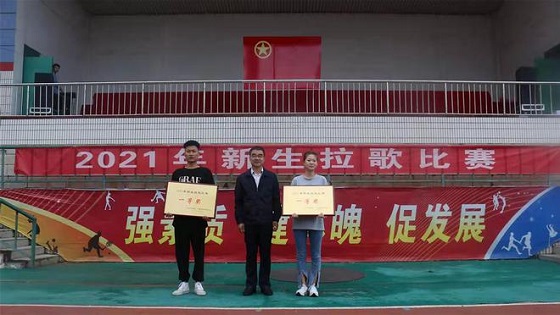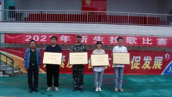 为迎接国庆,庆祝建党100周年,弘扬爱国主义精神,丰富校园文化生活,近日,衡水学院在南操场举办2021年新生拉歌比赛。校党委常委、副校长朱凯峰莅临现场观看,全体军训教官、学生参加比赛,团委副书记冯晶、武装部副部长郑衡、武装部办公室主任曹孟印、音乐学院团总支书记刘伟、武装部国防教育科科长冯娜老师担任评委。