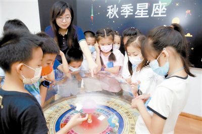 “我们都知道神舟十二号飞船顺利返回地球,但大家知道在航天员没有‘飞入’宇宙前,科学家平时是如何研究未知星空的吗”“哪位小朋友了解‘秋季四边形’”……每当科技馆的天文老师宋媛媛提出问题,小营员们都会踊跃举手。昨天全新开营的“星空探索营”别出心裁,既有开阔视野的天象厅观影、望远镜观测,也有干货满满的天文探究、航天探索课;既有需要动脑的寻星指北认方向,也有画“星空图”、做“星空灯”等动手活动,沉浸式教学让孩子们不时爆发出阵阵惊叹声和欢呼声。