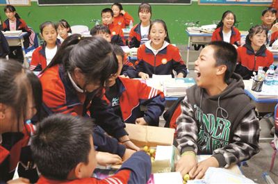 近日,在距离天津1600公里以外的甘肃省陇南市宕昌县大寨九年制学校的445名学生迎来了自己的“水果节”。来自天津市滨海新区太平镇友爱村的冬枣成为这个“水果节”的“主角”,为孩子们带去了来自远方的温暖。