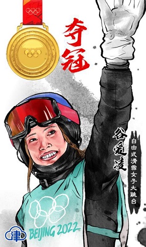 在7日上午进行的资格赛中,谷爱凌虽然第二次滑行中出现失误,但凭借第一跳和第三跳的稳定发挥,以资格赛第五晋级决赛。决赛中,谷爱凌第一跳发挥稳定,凭借完美的腾空高度完成了向右1440的动作,获得了93.75的高分,排在12名决赛选手中的第二位;第二跳,谷爱凌选择左转1080动作,平稳落地后拿到88.50的分数,这个分数排在第二跳所有选手中第四位,总成绩滑落到第三;第三跳中,谷爱凌如果想要反超拿到金牌,谷爱凌必须拿到94分的高分,她选择自己从未尝试过的向左偏轴转体1620,并且腾空高度和落地近乎完美。