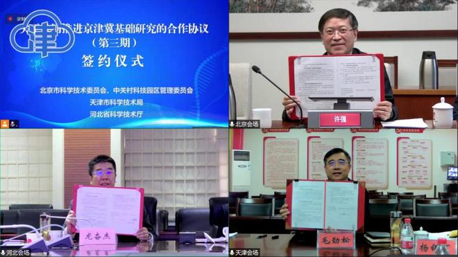 2月9日,京津冀三地共同举办“关于共同推进京津冀基础研究合作协议(第三期)”视频签约会。