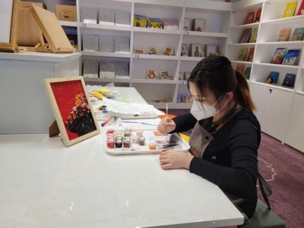 在恢复开馆的同时,位于图书馆一楼大厅右侧区域的ONE BOOKS也于当日正式对外开放。该区域不仅为市民提供学习纸浆艺术画、马赛克拼贴画、毛球创意画、花灯制作等多种艺术手作的空间,并售卖各类畅销书、茶工艺品。接下来还将陆续举办相关学习指导交流活动。