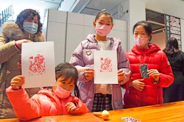 在滨海美术馆,“迎新年——虎年版画拓印活动”吸引了前来参观的孩子们的注意。“本次活动,原本计划在大年初一到初六推出,因为疫情推迟到今天开始,持续至本月27日结束,感兴趣的市民可以通过版画拓印的艺术形式制作一张属于自己的虎年卡片,给这个虎年留下一份特殊的记忆。”滨海美术馆工作人员介绍说。