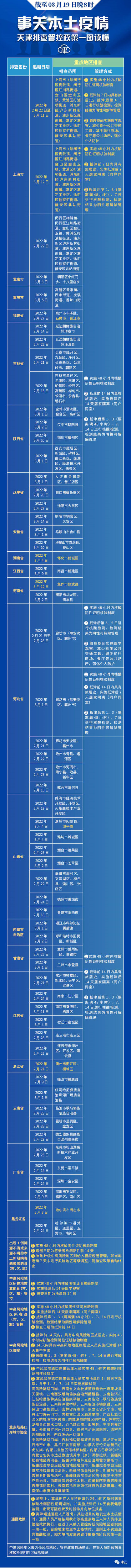 相关人员主动报备。新增具有2022年2月27日(含)以来途经福建省泉州市石狮市、晋江市,具有2022年3月4日(含)以来途经湖南省怀化市鹤城区,具有2022年3月12日(含)以来途经河南省焦作市修武县,具有2022年3月4日(含)以来途经山东省滨州市邹平市,具有2022年2月27日(含)以来途经浙江省衢州市衢江区、柯城区,具有2022年3月3日(含)以来途经黑龙江省哈尔滨市尚志市旅居史的来津及返津人员,需持48小时内核酸阴性证明或出示包含核酸检测阴性信息的健康码“绿码”,主动向社区、工作单位等报备,抵津前14日内具有旅居史,实施抵津后14天居家隔离(同户同室)。