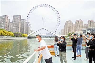 不仅是外地游客,很多本地市民也趁着假期来乘坐游船。“海河是我们的母亲河,这些年海河两岸发生了翻天覆地的变化,和国外很多国际名城相比丝毫不逊色。每次坐游船,我都非常骄傲和自豪。”说到这里,东丽区市民王先生的脸上洋溢着激动。