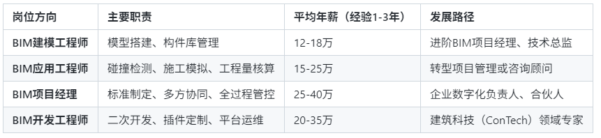 国内BIM技术人才缺口约80-100万人,具备BIM能力的工程师薪资普遍高于行业平均水平30%以上。