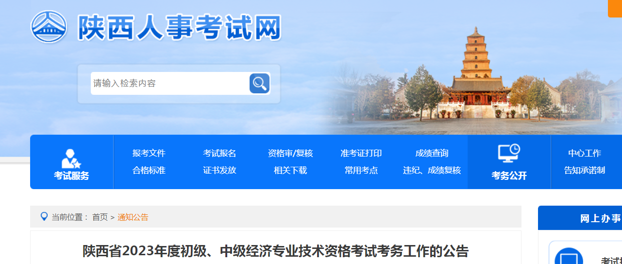 陕西省2023年度初级、中级经济专业技术资格考试考务工作的公告