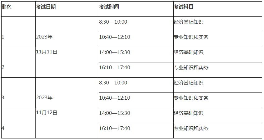 1. 初、中级经济考试分2天,上、下午共4个批次实施。各级别及专业类别的批次划分和考试时间以准考证为准。
