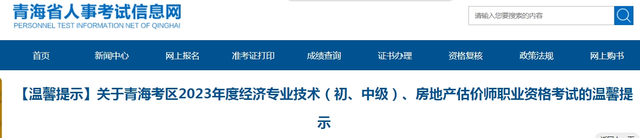 关于青海考区2023年度经济专业技术(初、中级)、房地产估价师职业资格考试的温馨提示